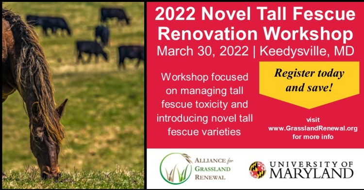 Our 2022 Virtual Novel Tall Fescue Renovation Workshop will be held on March 8th, beginning at 6 pm (ET). Registration is just $15 for the 3 hour program and includes a recording of the event. Topics and speakers include Toxicosis and Types (Joe Bouton), Improving Animal Performance (Gabe Pent), Establishment and Management (John Andrae), Seed Quality and Testing (Gene Schmitz), On-Farm Economics (Matt Poore), and a summary and discussion (Ray Smith). Click here for more details or to register.
