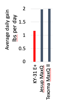 Endophyte-free (E-) fescue wasn’t the solution but a group in New Zealand was able to create cultivars with naturally occurring endophytes that don’t produce ergot alkaloids (Table 1) but still retain host persistence (Johnson et al 2013). When tested on cattle, the animal performance was far superior to that of the E+ KY-31, where cattle grazing the new novel endophyte infected (NE+) cultivars, Jesup MaxQ and Texoma MaxQ II, had almost double the average daily gains than those on E+ KY-31 (Fig. 3) (Parish et al 2013). NE+ tall fescue is also a suitable forage for pregnant mares, as they performed as well as those grazing orchardgrass/Kentucky blue grass mix, showing no signs of fescue toxicity typically seen with E+ KY-31 (McDowell et al 2019). In addition, the NE+ cultivar Texoma MaxQ II has been shown to be more desirable for beneficial dung beetle performance, which provides nutrients back into the soil (Shymanovich et al 2020).