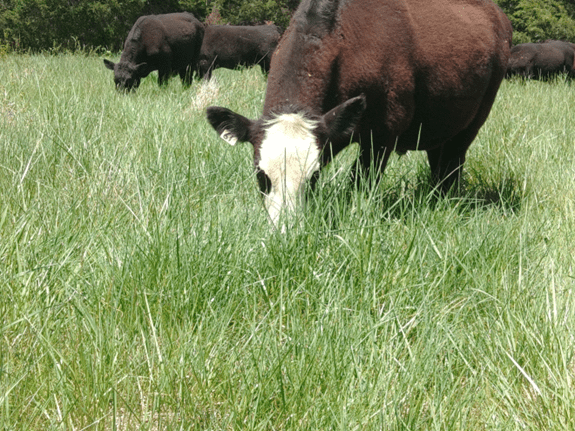 We start the grazing season on our tall fescue-based pastures earlier than is typically recommended as a way of controlling seed head production. Cattle will readily eat the boot to early-bloom stage seed heads when they move into a new pasture, so by turning out early and moving quickly we can cover most of the pastures and get most of the seed heads eaten off. Once we start the second grazing cycle the vegetative tillers and clover has really come out. The third cycle will be mostly red clover and warm season perennials (dallisgrass, bermudagrass, and purple top), and annuals including crabgrass and foxtails. Our fourth cycle will be on whatever stockpiled growth has accumulated, and this will be a mix with a lot of tall fescue, but also a mix of all those other plants.