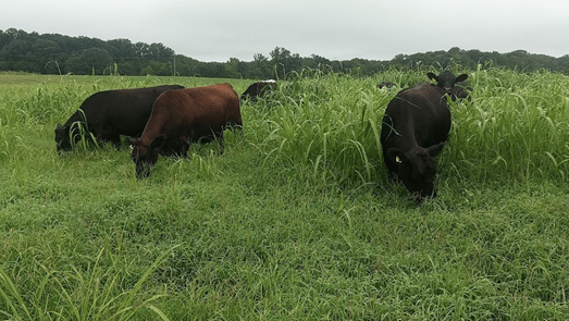 Our bred heifers have been grazing across several fields of novel endophyte tall fescue, where they are at a low stock density so they can selectively graze crabgrass and Johnsongrass. They are in exceptional condition and starting to spring. Our finishing cattle at the home farm have been grazing a mix of crabgrass and Johnsongrass we manage to be our summer component following ryegrass in the cool season.