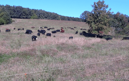 We had over 10 inches of rain in September which stimulated a lot of late growth of warm-season grasses. We have dramatically reduced fertilization of our pastures over the last 5 years, and the result is the toxic tall fescue has been in decline relative to legumes and warm season perennials and annuals. This has helped us with our fescue toxicosis problems, but has reduced our ability to stockpile for winter grazing, increasing our hay feeding days. In the photo cows are grazing a crabgrass, Johnsongrass, tall fescue mix.