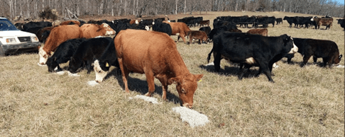 Now that our 2022 born finishers are gone, we will focus on getting the 2023 crop finished a little earlier than we did this year. We have these cattle in two groups, with 30 at our other farm in North Carolina still grazing on stockpiled tall fescue (photo). This farm is managed to have enough stockpile to last through the winter, and this time of year the cattle really pick up when the green tips start to push up through the old stockpile. This gives an increase in the quality of the diet, and makes for a smoother transition to the spring grass when things do turn on in a month or so. The other finishers are still on the Virgilina farm being fed hay, and they will be combined with the AI heifer group as soon as we have ryegrass available.