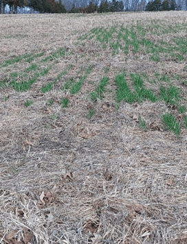 It was a challenging tall fescue establishment year for us in 2024 with very dry conditions during the planting season. This resulted in delayed planting dates, so plants were very small going into the winter. In January we had some extremely cold weather for several weeks, and the small plants were severely damaged. This has made it very slow to come out, but there still seems to be an adequate population of plants in most cases.