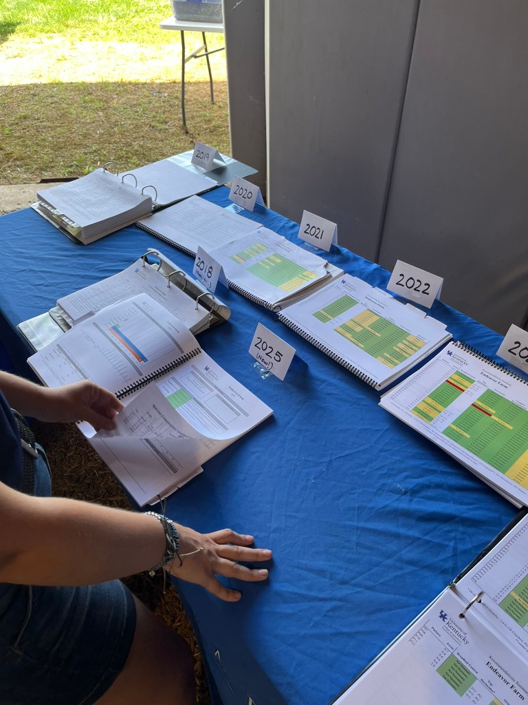 As the attendees finished their dinner, they had plenty of time to speak with the vendors. These included the University of Kentucky’s Ag Equine Programs, McCauley Feeds, Hallway Feeds, the Alliance for Grassland Renewal and University of Kentucky Plant and Soil Sciences. Endeavor Farms also made all of their pasture records available, showing steady improvement over years of focused pasture management.