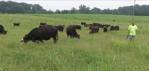 Johnsongrass is actually turning into a significant problem for us across the farm. I like Johnsongrass’s persistence, and the quality it has when young, but as it matures it really gets tough and the cattle don’t want to eat the stem. It also smothers out more desirable forages (like novel endophyte tall fescue). In the back of our farm where we keep the mature cow herd it is especially thick and we have come no where near getting over it all with just the dry cows. Two weeks ago we moved all the cattle groups but one to the backside of the farm where they are doing their best to eat through a big overabunadance of these summer grasses which also include a lot of dallisgrass and purple top. We will bushhog these pastures behind the cows to set them up for the next round. The areas with very high stands of Johnsongrass will be overseeded with ryegrass in November after the final grazing.